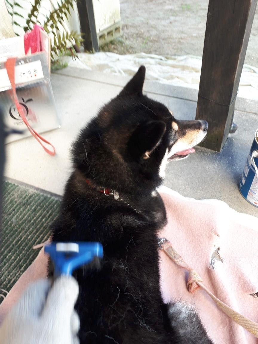 イノちゃん、心の交流はブラッシング以外に、散歩から帰って来て訓練所の坂道を上がっている時にテンションがアップし易いので、それを利用します。