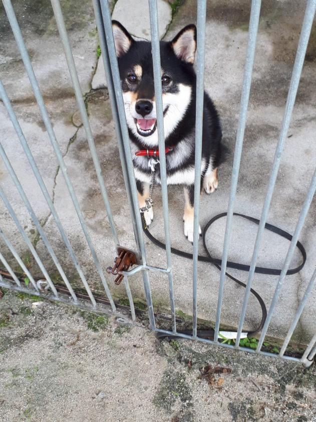 イノちゃん、持参のオヤツを取り敢えずの動機付けとして訓練しています。