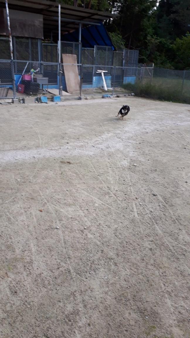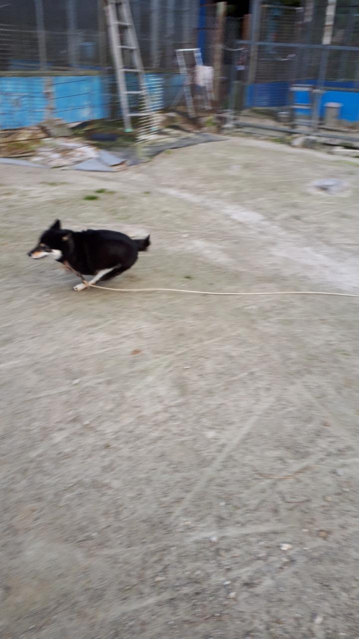訓練のご褒美に、抱いて揺さぶり振り回してネジを巻くと、地面に置くと走りだす。