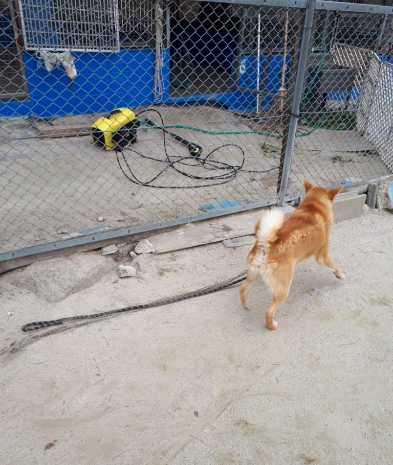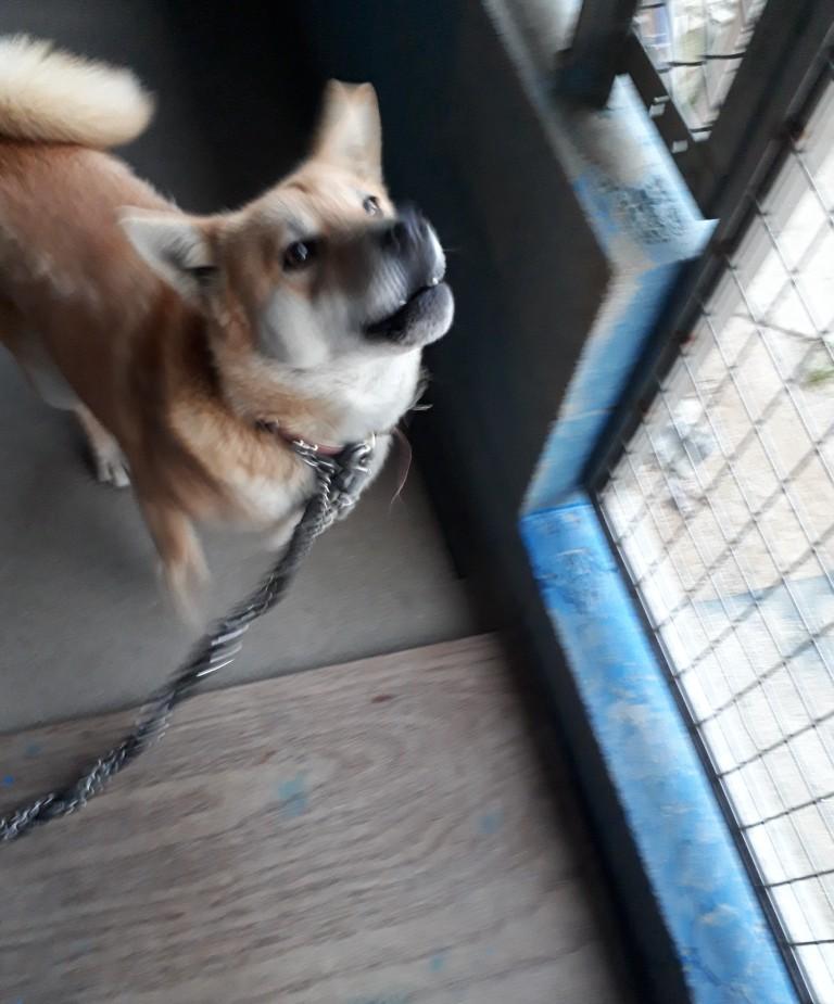 むぎ君、人が犬舎に入って行く時に吠えなくなりました。