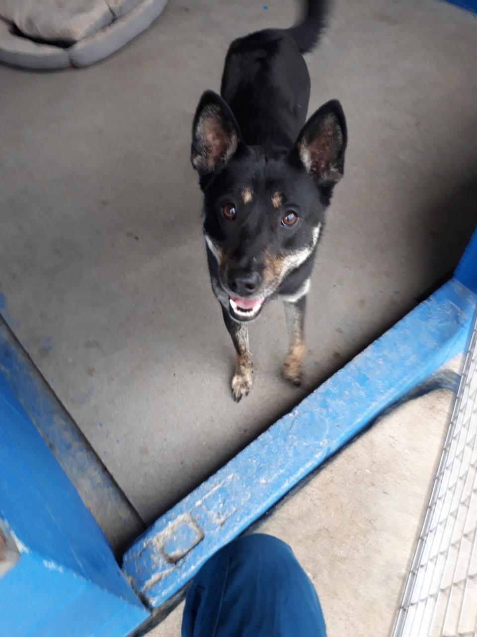 マロ君、表情に余裕が出てきて、人が犬舎に入って行くと軽くピョンピョンする。