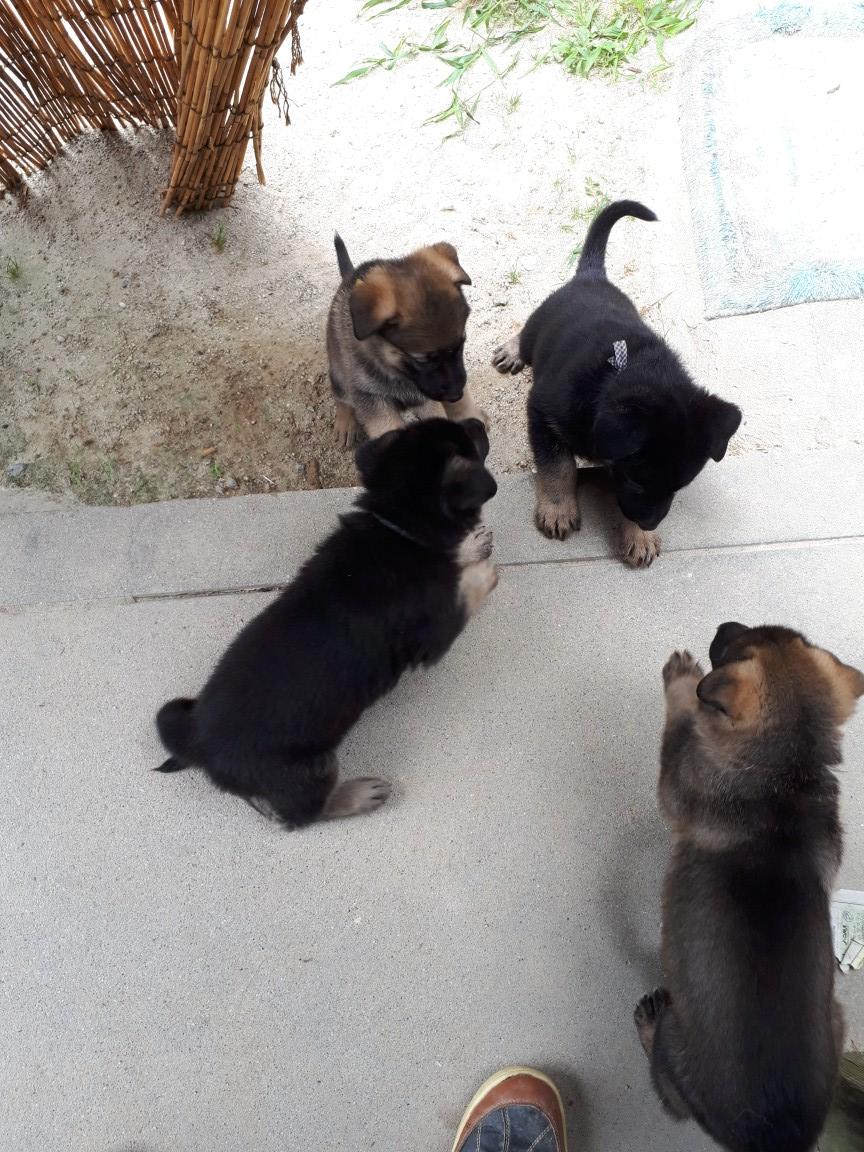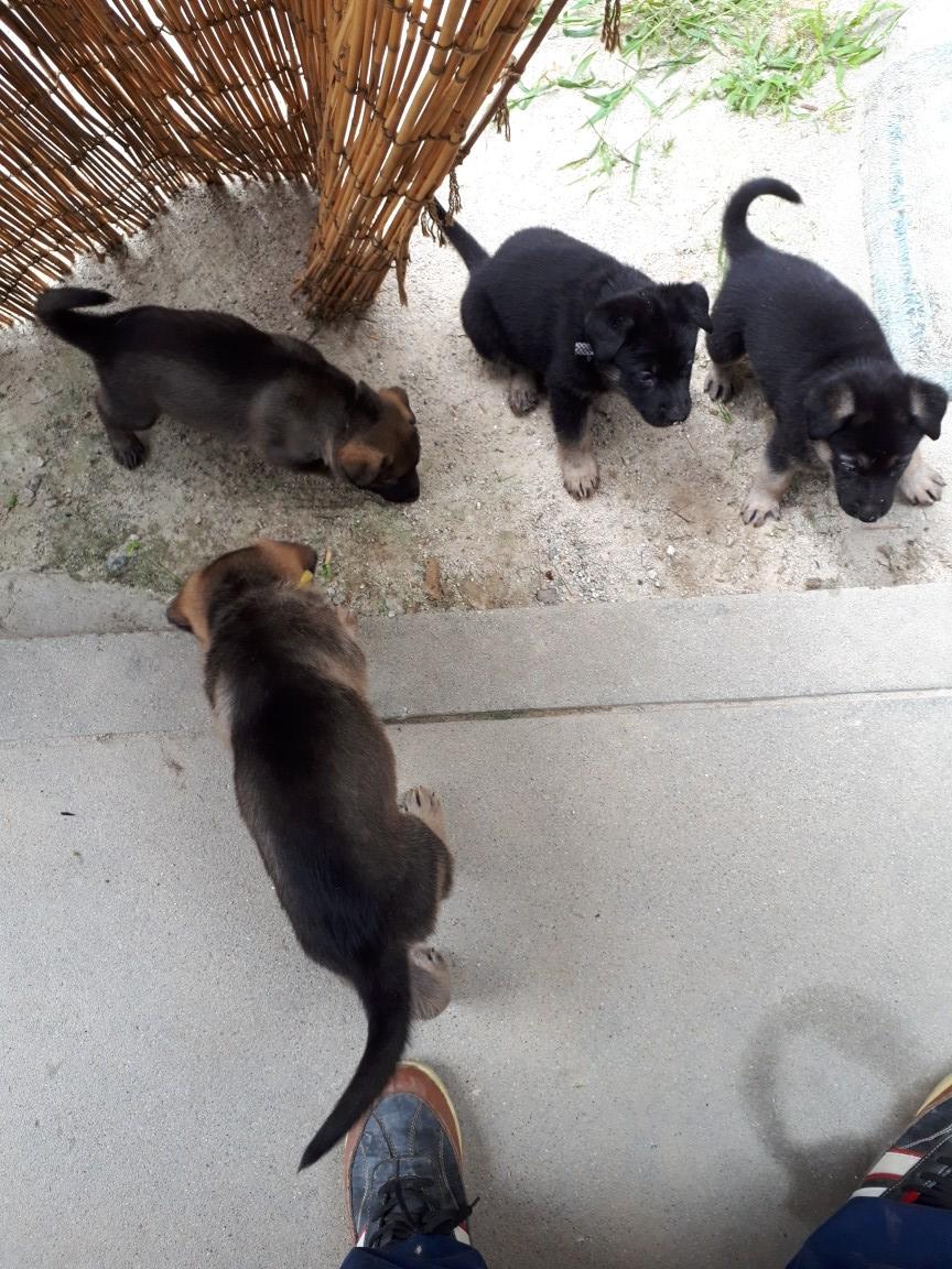 オス4頭(ウルフ色2頭、ブラックタン色2頭)です。両親共に日本足跡追及訓練チャンピオングループ、嘱託警察犬県大会優勝歴有(奈良、和歌山)。