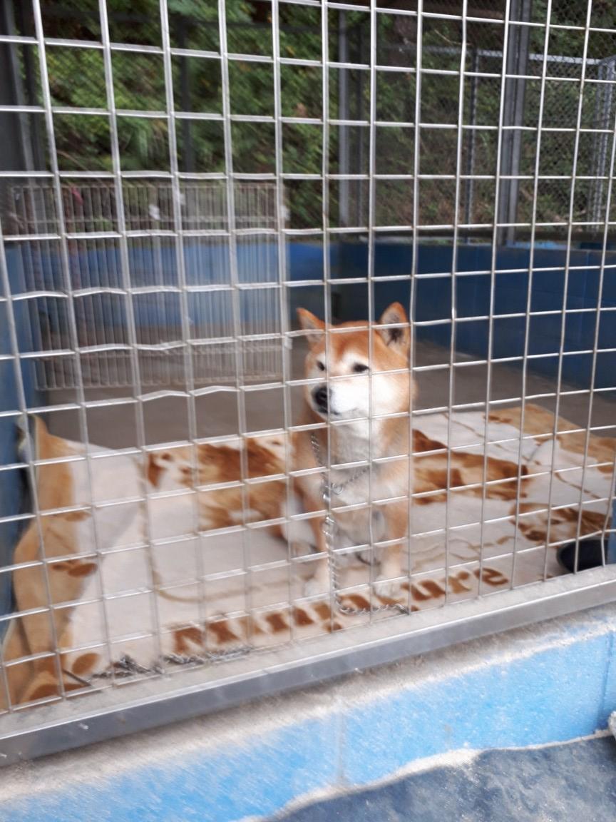 レオ君、首輪の跡形が無くなるように犬舎では外す事にしました。