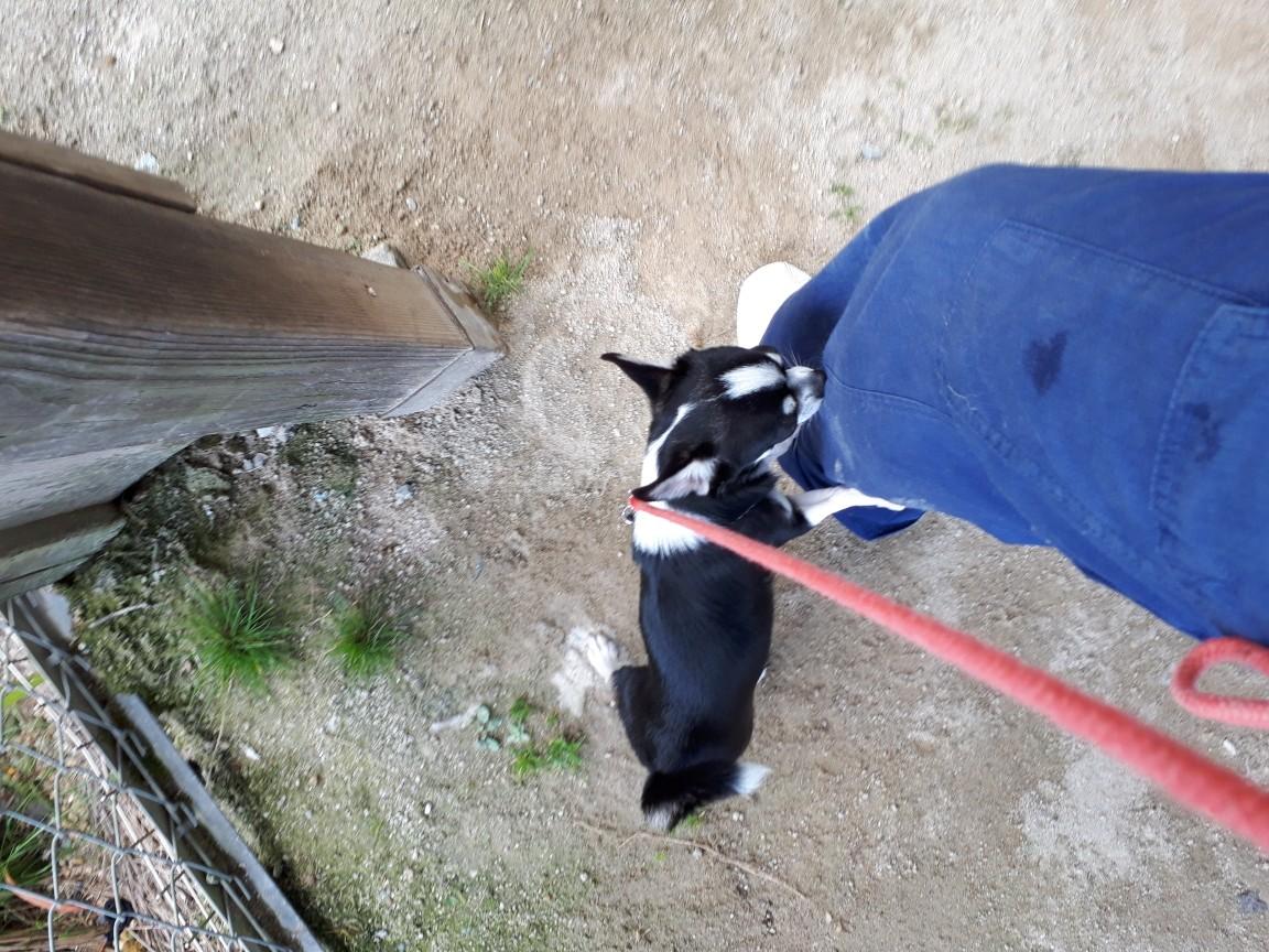 他の犬の臭いがする作業ズボンが気になって仕方ない龍君です。