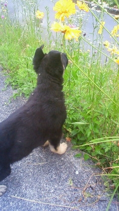 熊っ子のようでいて、成長してからは素早い動きで建物の陰にかくれんぼをしていた、訓練所初のブラック色の仔犬。