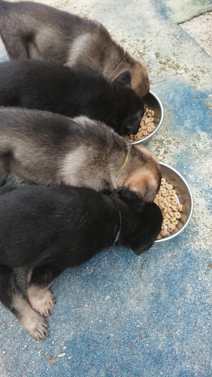 オス4頭(ウルフ色2頭、ブラックタン色2頭)です。両親共に日本足跡追及訓練チャンピオングループ、嘱託警察犬県大会優勝歴有(奈良、和歌山)。