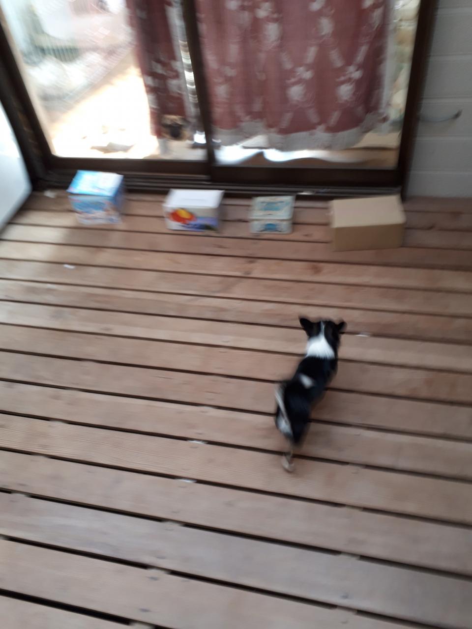 コカ♡ン、もとい、餌を発見告知時に「座れ」を命じてたら、最近は自ずと座るように。