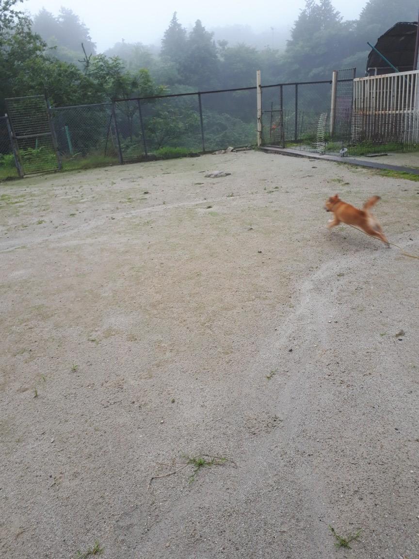 人が犬舎への出入り時に、足元から飛び出さないように意識付けました。