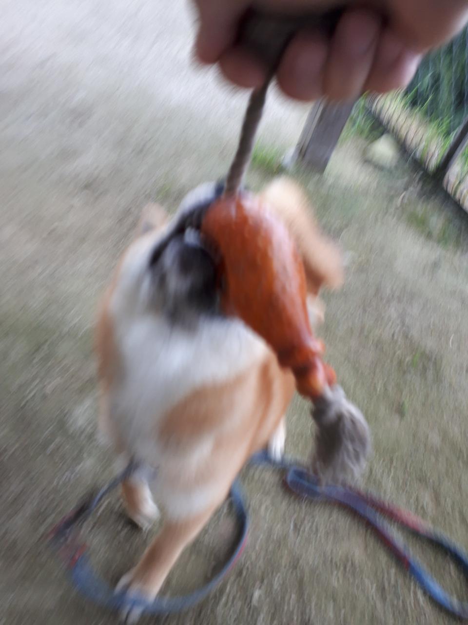 引っ張りっこ中、楽しくてウーウー言うのは構わないのですが、威嚇的にウーと言う場合はたしなめています。