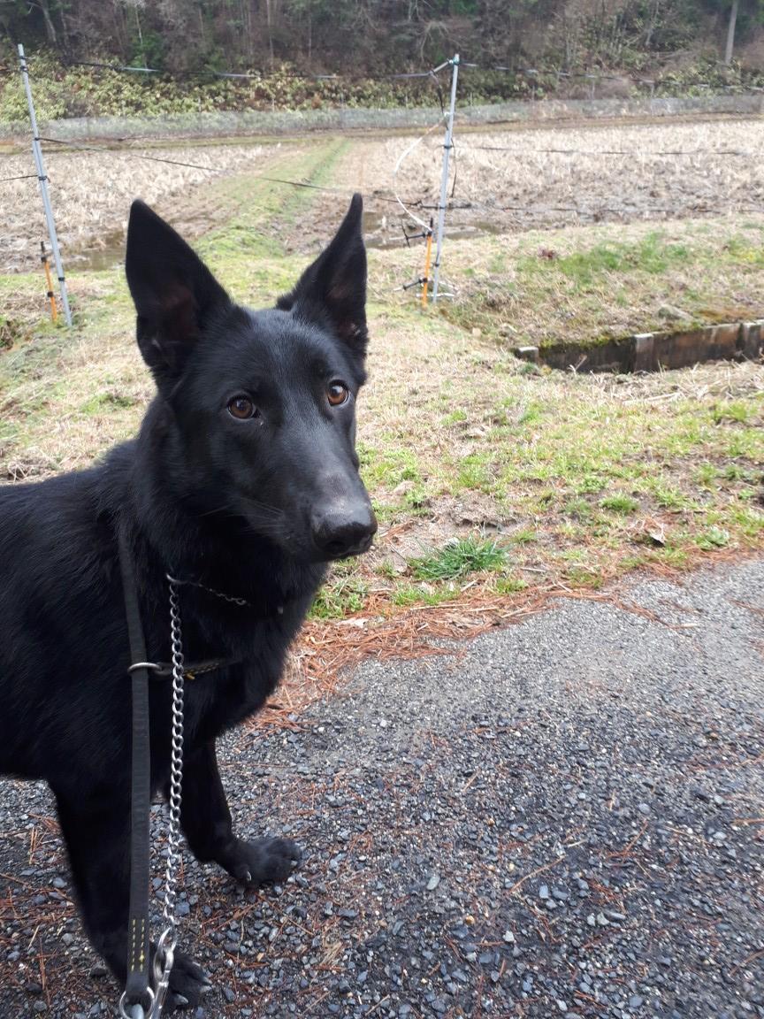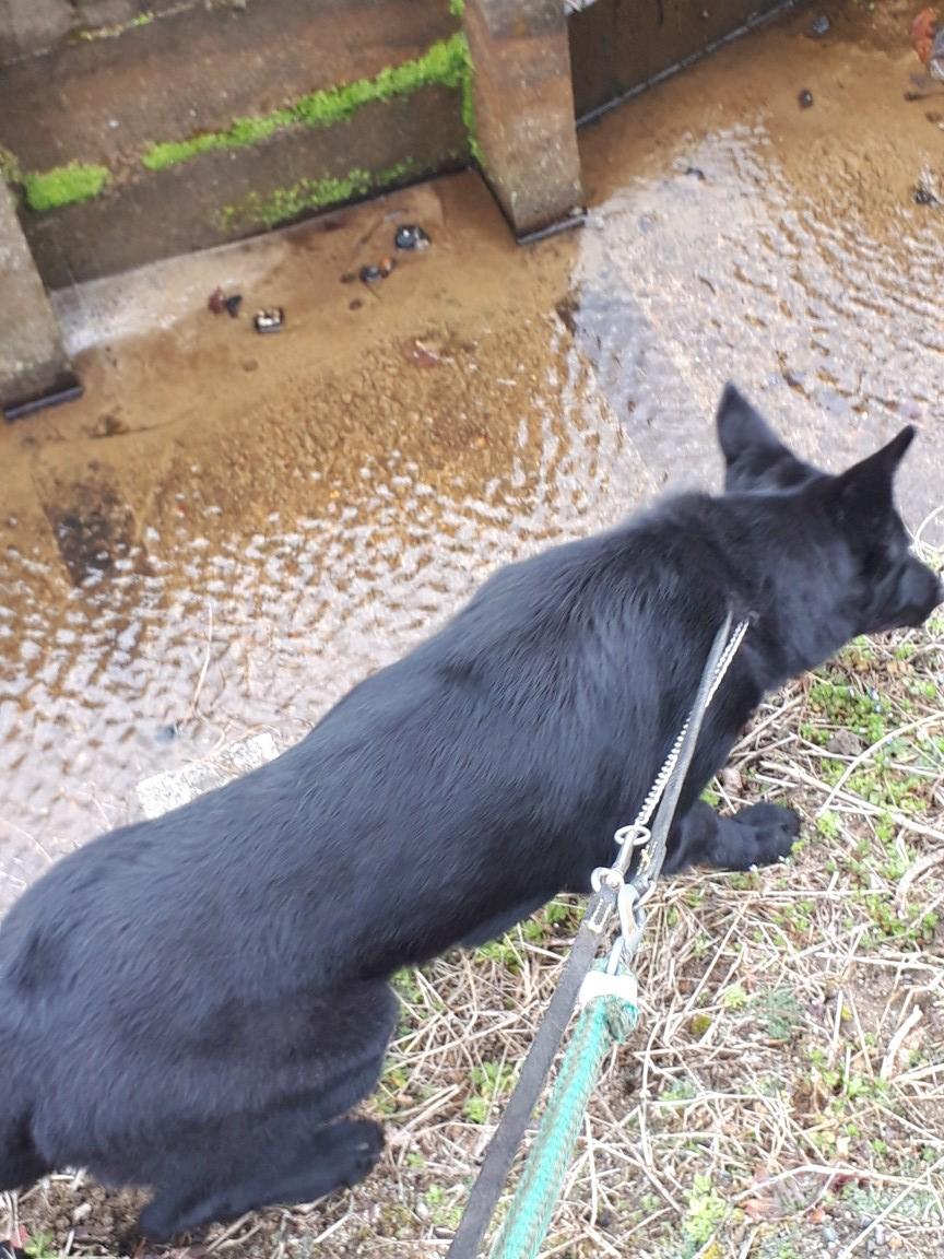 入所前の癖か、脚側に付けている時にでも道すがら他犬の排尿臭に気楽に鼻を持って行く点は今後改善します。