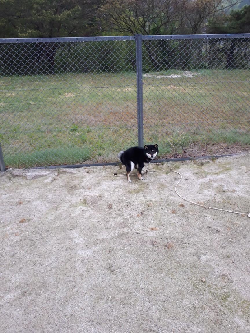 陸君、自宅で紐付きでうろうろしていたせいか、グランドでも人が近寄って来たら捕まえられるという気持ちが働き離れようとしたり、人のしゃがむ動作を見ては、紐を掴まれ自由を拘束されるという気持ちから、そうはさせじと動きます。