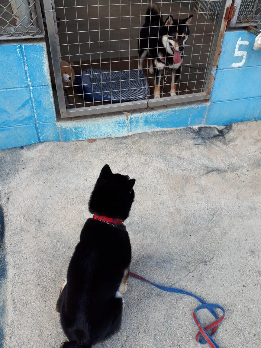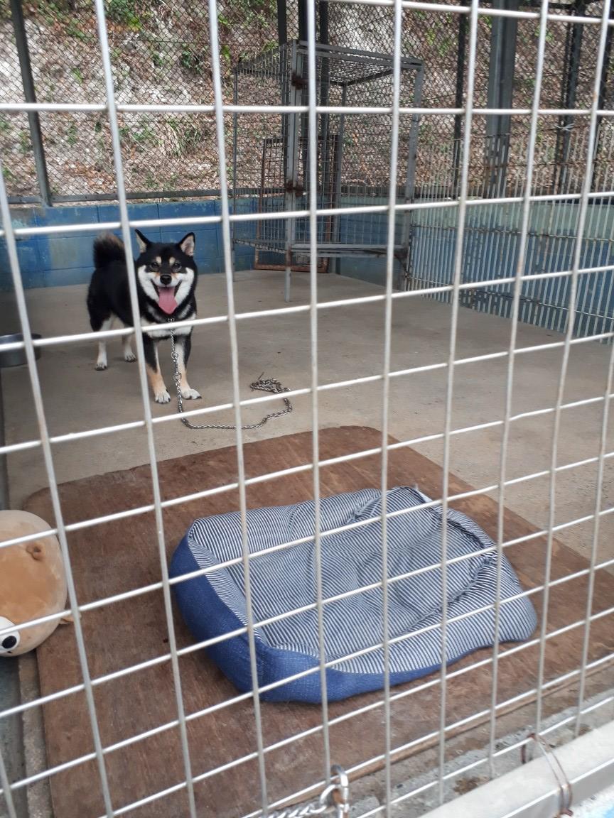 入所時と面会後は犬舎の前に食器を持って立つだけで猛獣かと思うくらいに吠えてましたが、数日後には、やや落ち着きました。