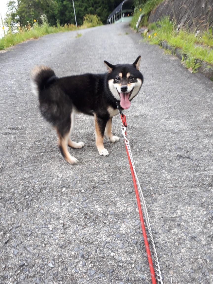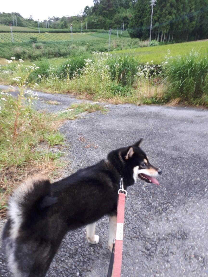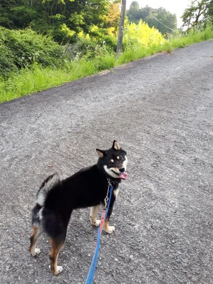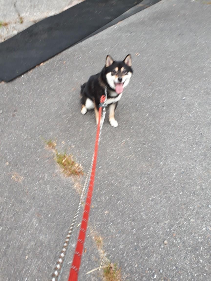 イノちゃん、夕方はグラウンドを歩いて納得させてから散歩に行く。