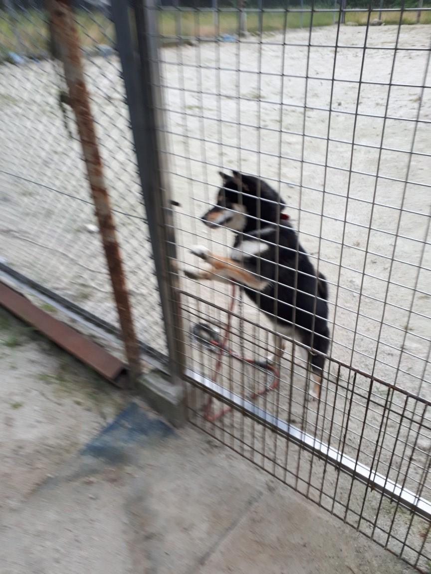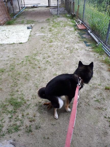 物珍しい小粒フードを犬舎外から誘導的にやってみて、煮干しと共に持参フードに振りかけて成功。