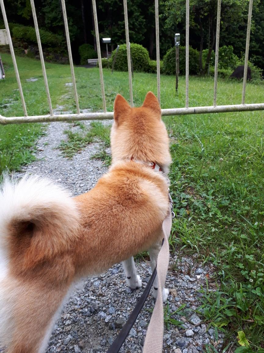 イノちゃん、外でも愛想良くしてくれていたかと思うと、紐を拾う動作に突如として攻撃的に変身する時があり、おおよその全体像把握の段階です。