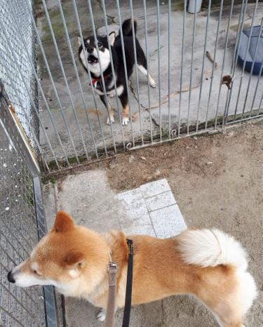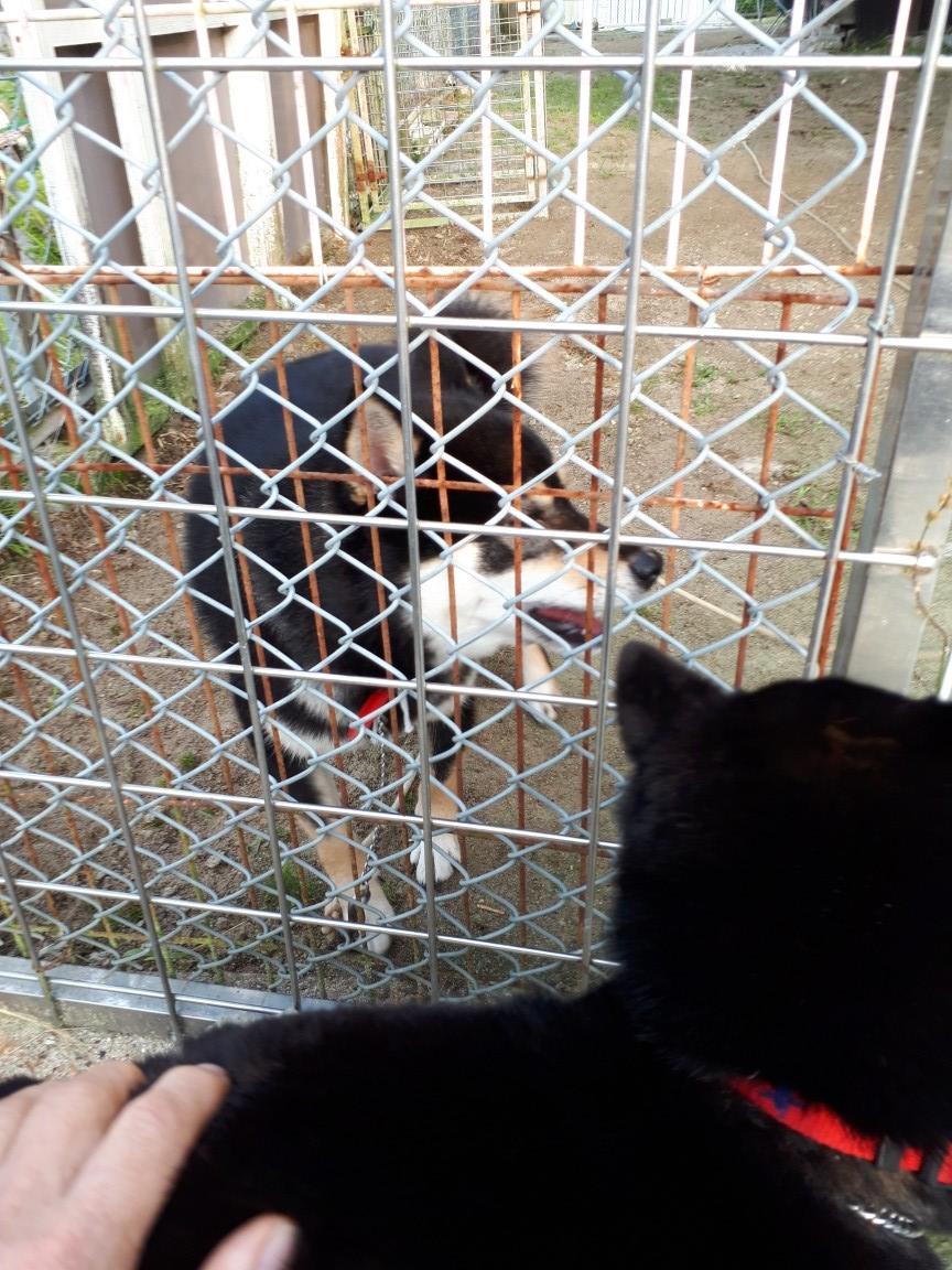 犬舎の前に立つと愛想を見せてくれるようになり、閉めた途端に吠える事はなくなりました。