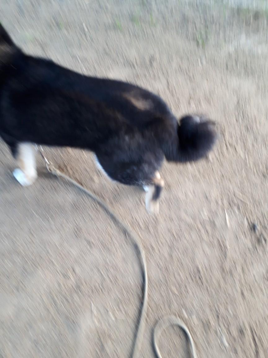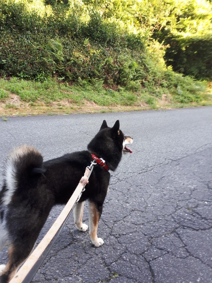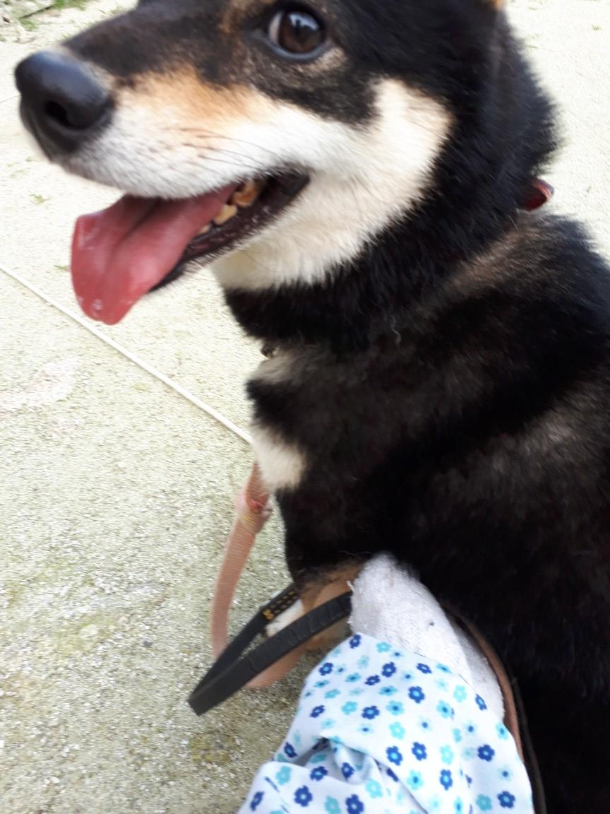 イノちゃん、表で動いているうちに、長綱が首輪から身体の横に添い巻尾の中を通って後方に。