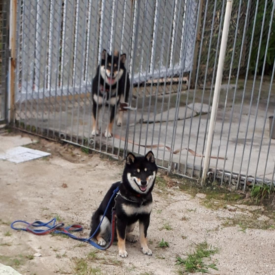 昼はグラウンド犬舎や建物側犬舎に、時に表サークルへ。