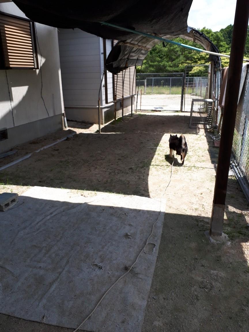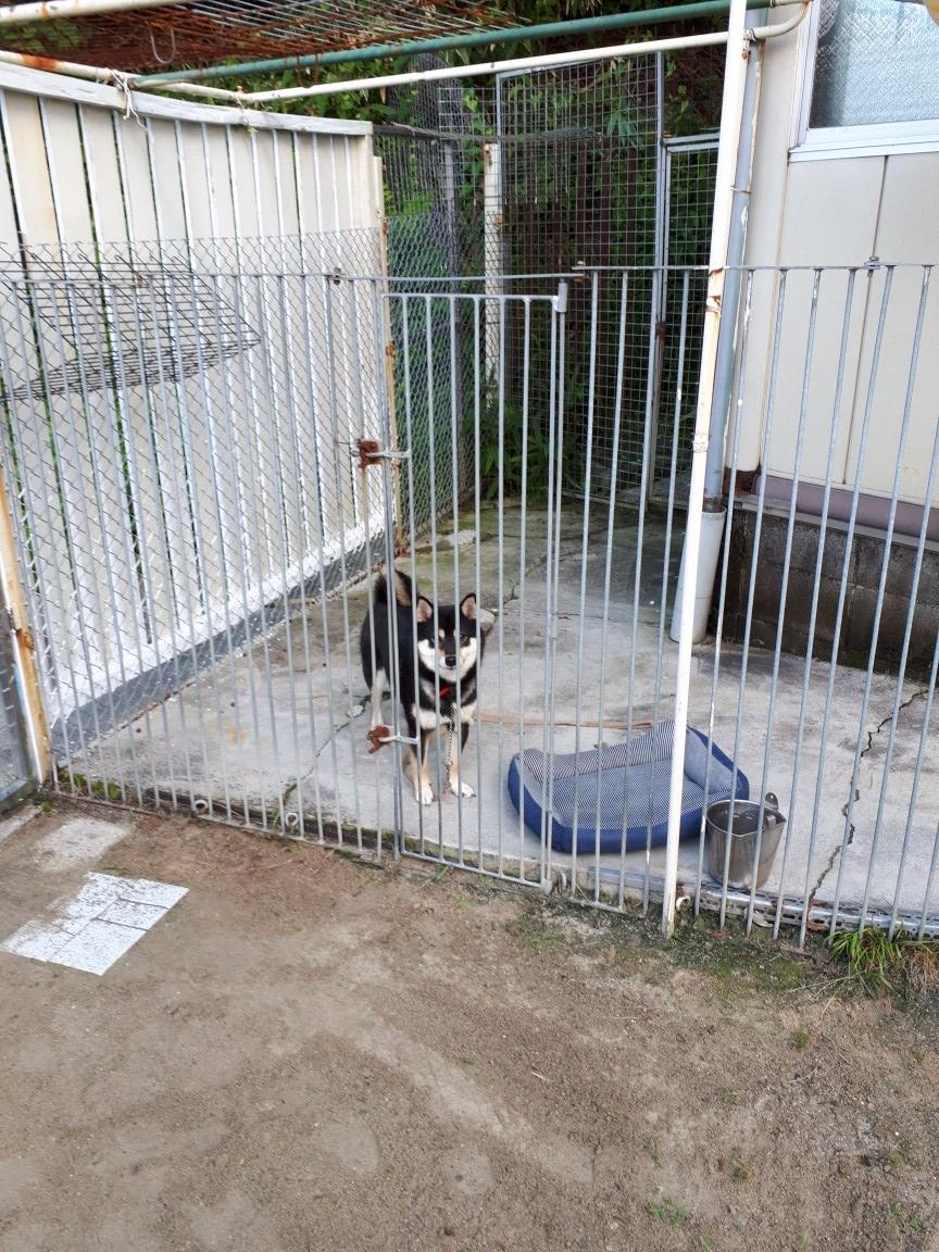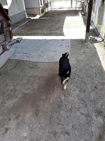 イノちゃん、他の犬と離していると落ちついて良いのですが、動かないと腹もへらないと思い、日中は皆の近くの犬舎にしました。