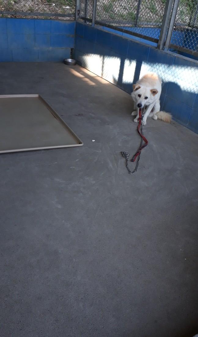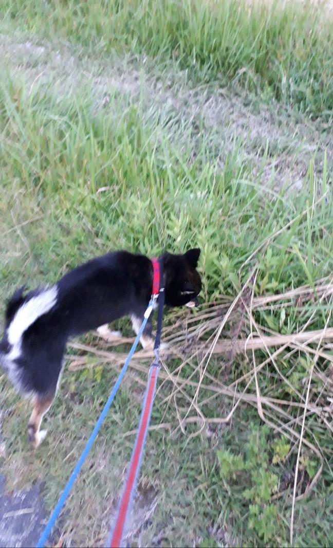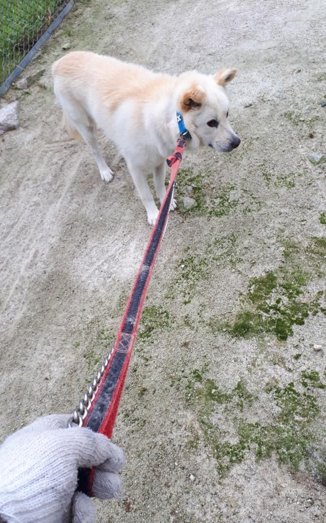 排便の時に犬舎から連れ出す時は、紐を拾うと素直について来ます。