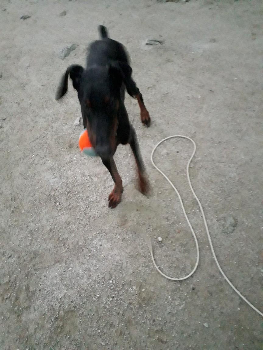ドーベルマン特有のばたついた動きを生かしつつ、型にはめていく。