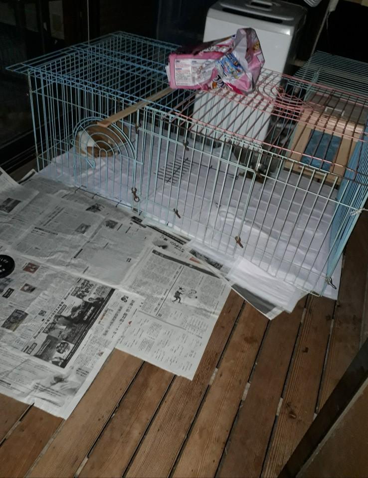今朝(5時)は、昨夜10~11時に最後の糞をしていたので輸送用ケージで寝かして(冷え防止も兼ね)中は汚さず。