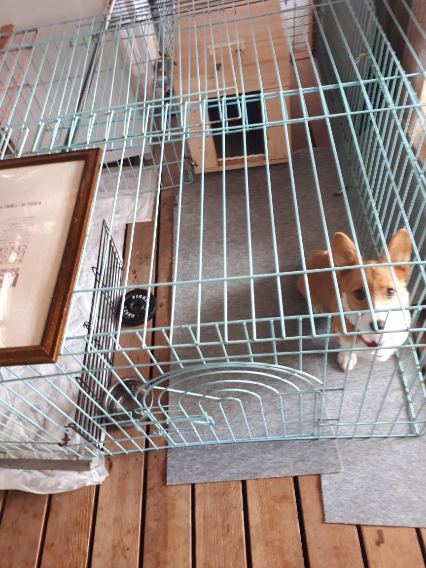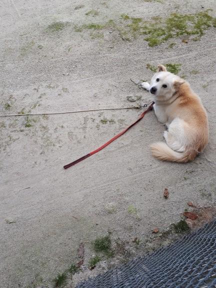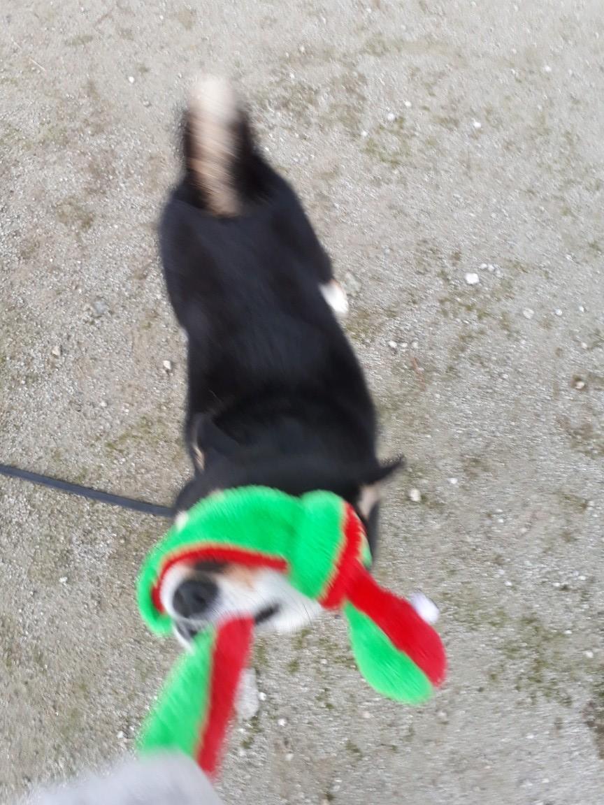 飛び付いて、座った人の顔を噛むのも紐で防ごう。