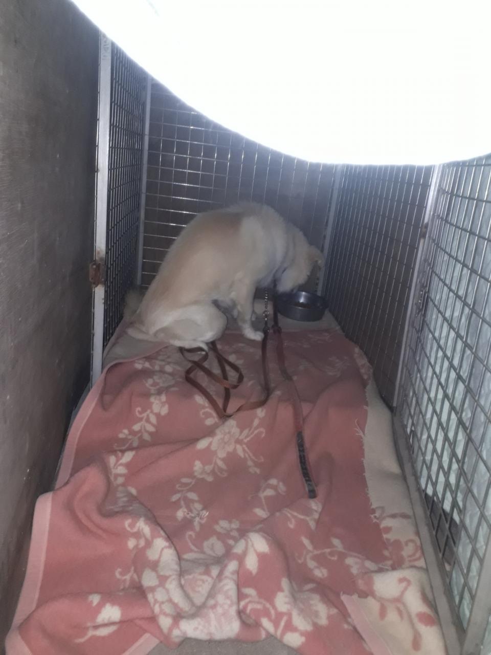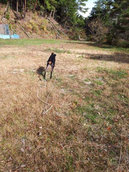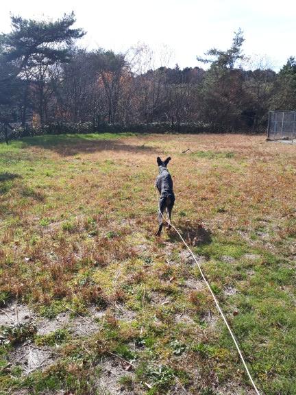 ほこり君は移動も大変なので、昼間居てるグラウンドに面したサークルに箱型犬舎を持ち込み、夜間用犬舎に。