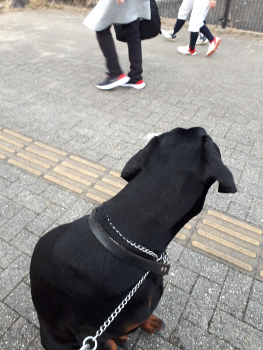 ご婦人と立ち話中じっと待っているので、「おとなしいですね」と誉めてもらう。