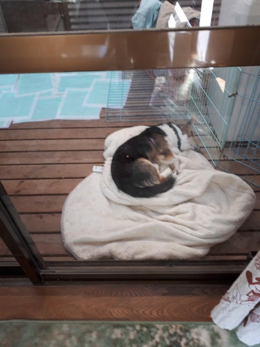 人が外の仕事から戻ってから暫くはソワソワしますが、やがて諦めて寝ます。