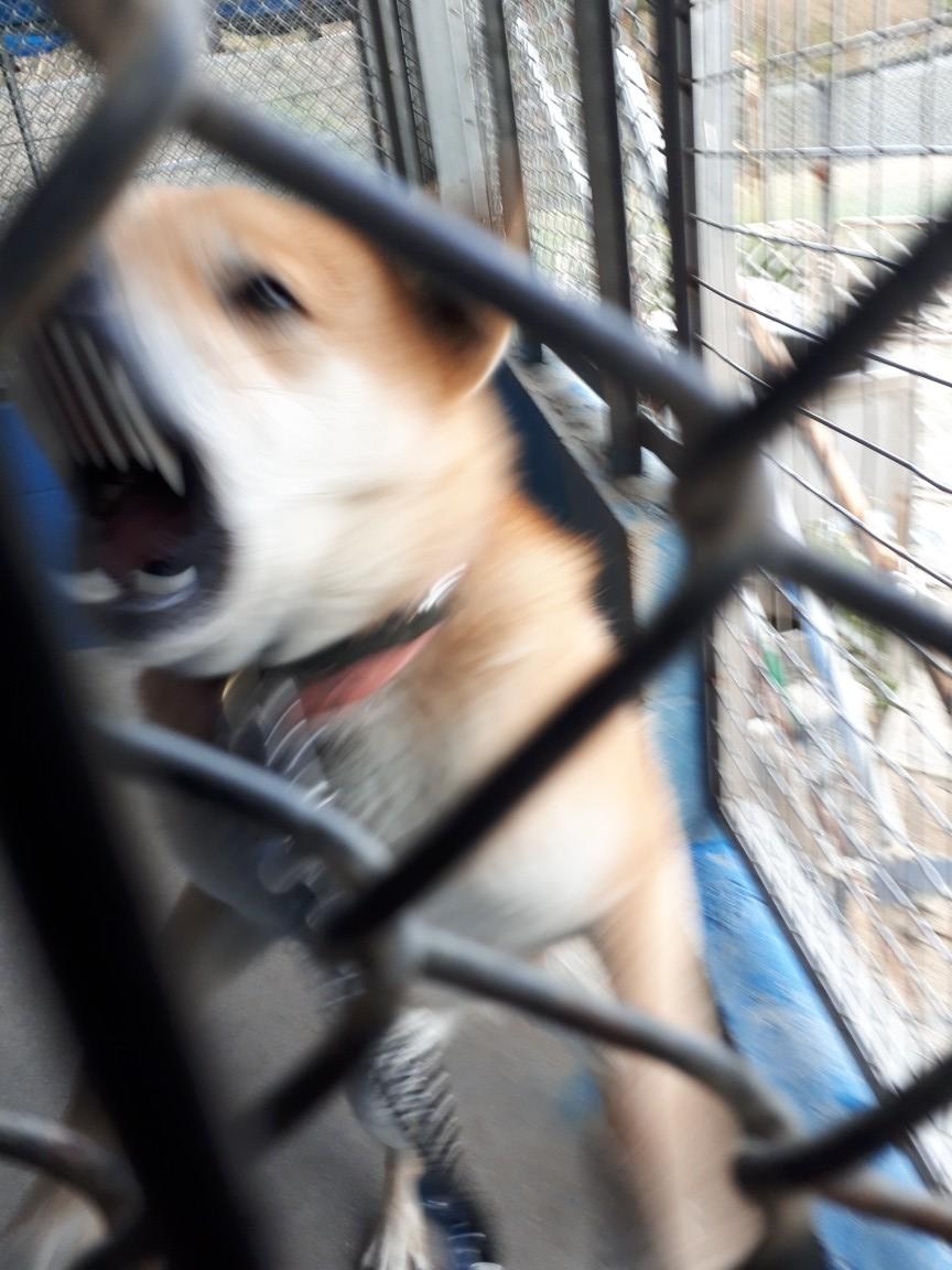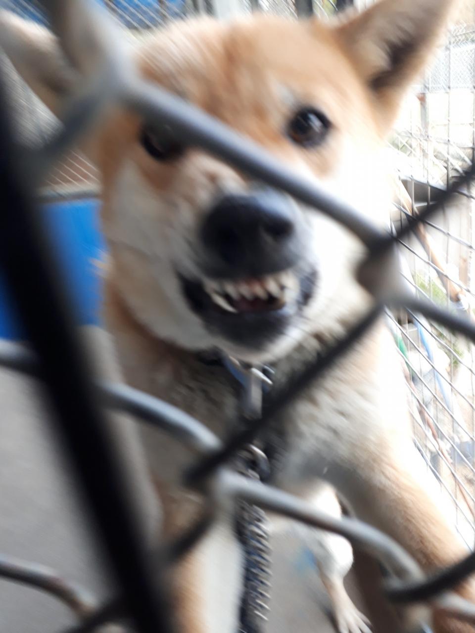 隣のサークルとの境の網を二重にする作業をしていたら、猛烈に吠えたのでした。