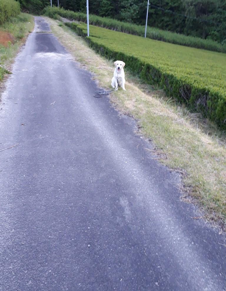 ラブちゃん、ボール持来、座れ待て、伏せ待て。