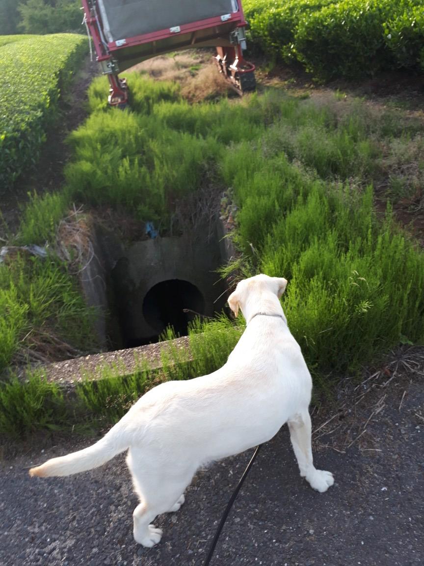ブリちゃん、グラウンドの臭いが気になり、嗅ぎまくり。