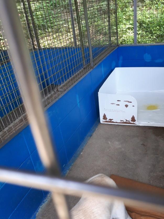 糞のサイクルが把握出来る迄、当分夜はトイレ付き犬舎で。