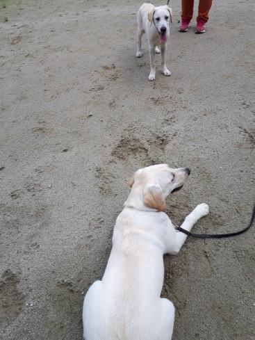 ラブちゃん、「待て」ですよ、遊びは勉強の後で。