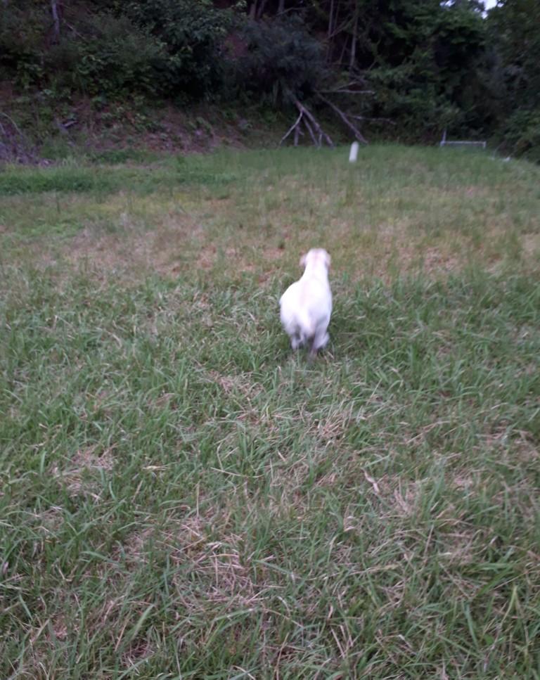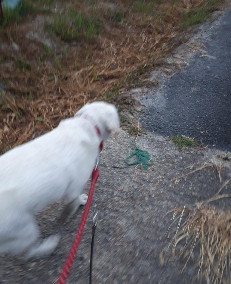 散歩で排泄も済まし、おとなしく日が暮れたと思いきや、家の中の物音でエンドレスに鳴く。