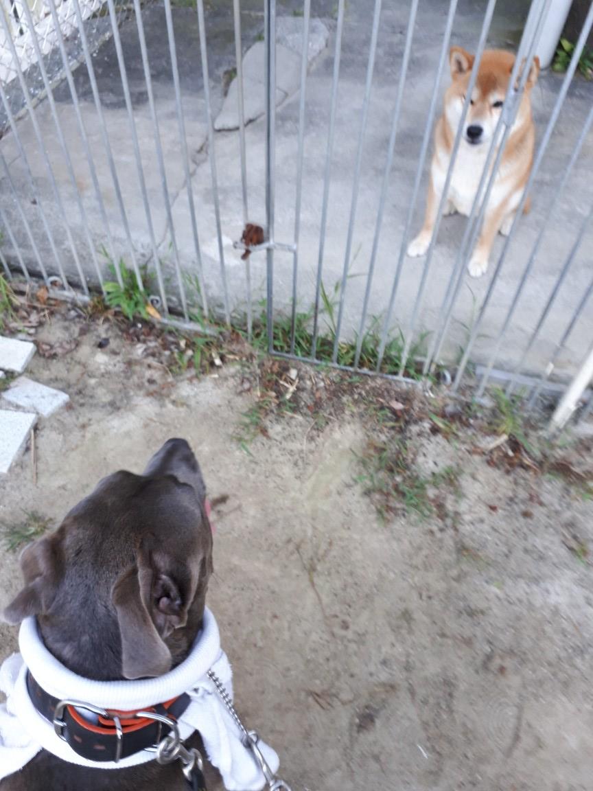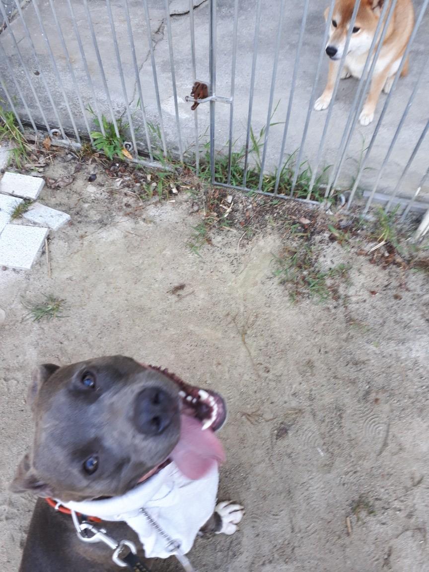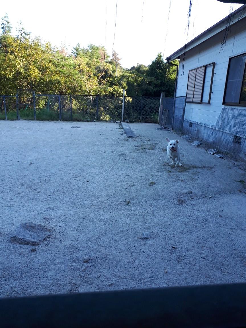 グラウンドのコロン君を見ては、サークル内のブロックに足をかけつつ背中の毛が総立ち、4m後ろの入口から「こらっ!」とたしなめると、反応良く止めて、こちらへ嬉しそうに(叱られちゃった、の感情も見える)走って来る。