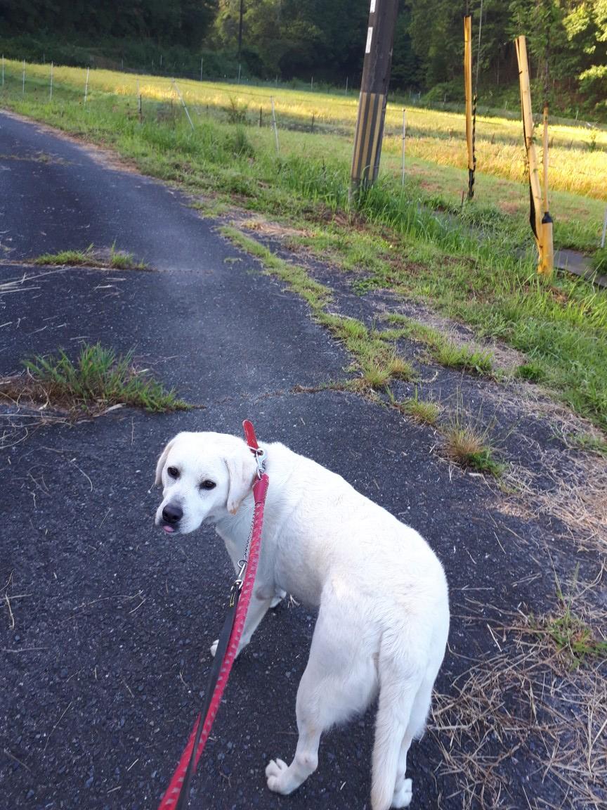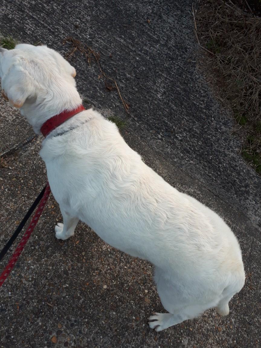 モモちゃん、夜は建物側の犬舎に移し、外部の人間の足音ではない事が分かってきたようで、鳴かなくなりました。