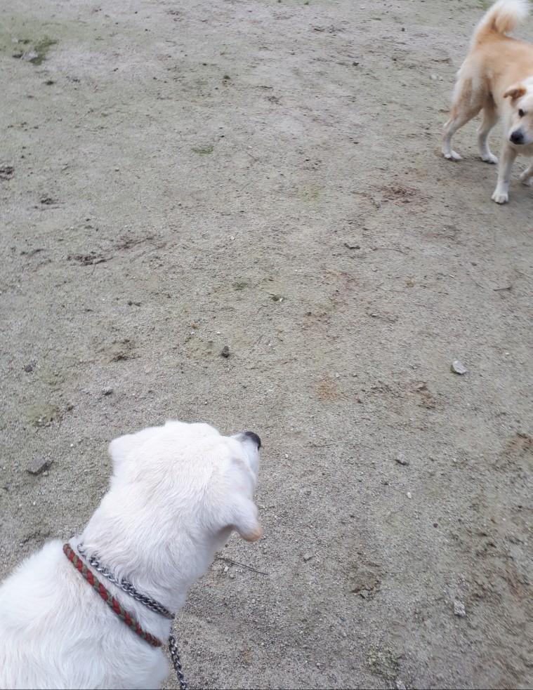 犬を見ると、遊びたいので引くのは当面仕方ない。