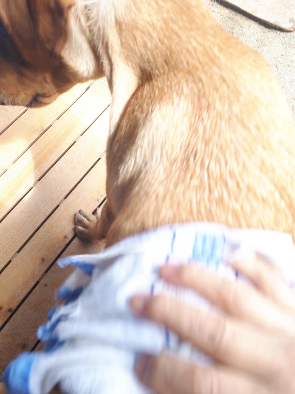 モモちゃん、「座れ」の声の時にお尻を押さえると、お尻くねくねするのがマシになってきた
