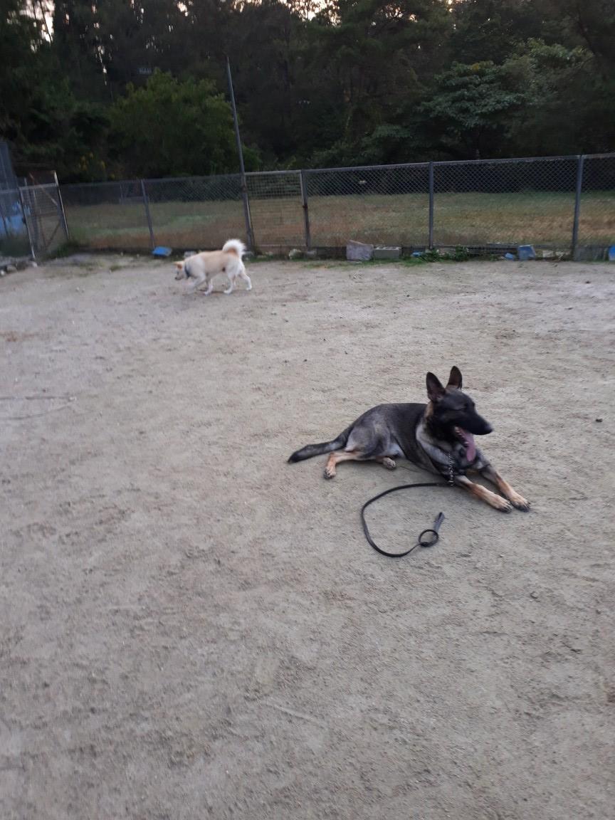 半分柴のむぎ君、紐無脚側行進にも違和感を感じなくなってきたようです。