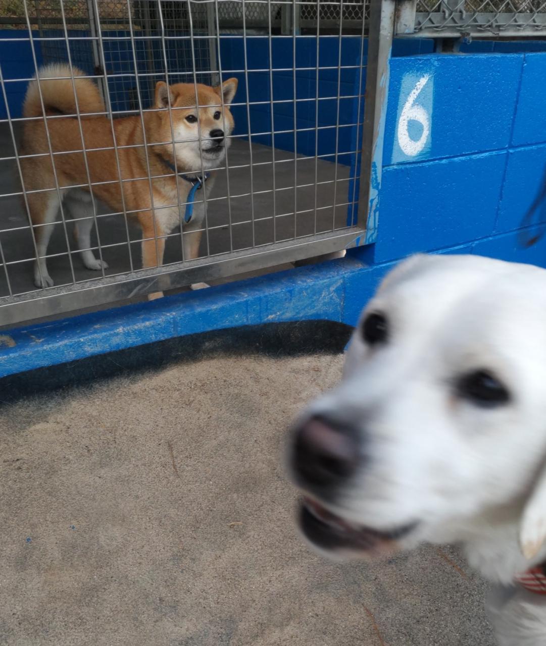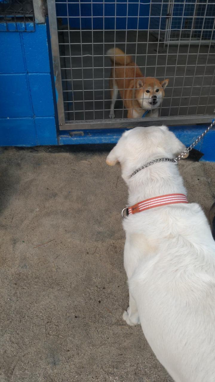 最初に興奮したのはモモちゃん。新参犬には態度がでかい。(本当はあんたの方が新参犬なんだよ)