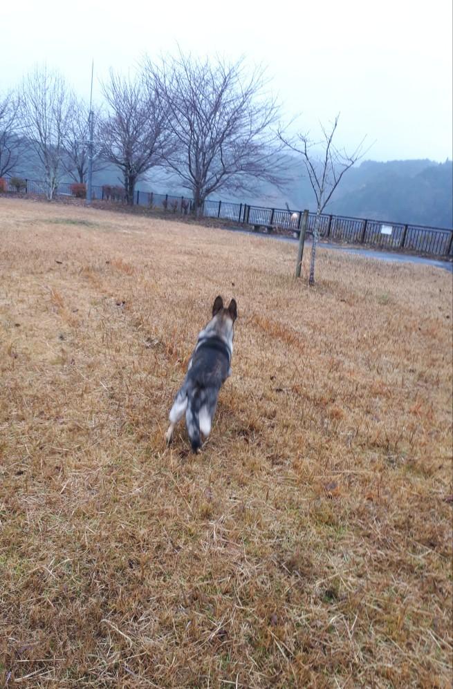 大人しい時はおっとりしているが、他犬相手に興奮スイッチONになると「にばーい、にばーい」どころか「さんばーい、さんばーい」練習しないと呼びが通じない部分がある高見山モモ五郎。