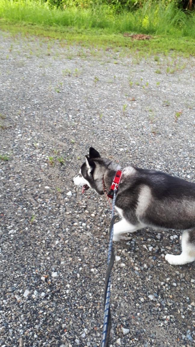 エルサちゃん、散歩中に草を齧ったりはするが、落ちている物は拾わなくなってきました。