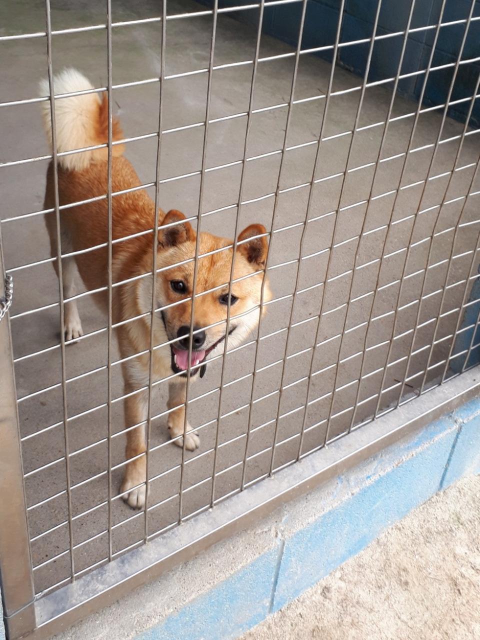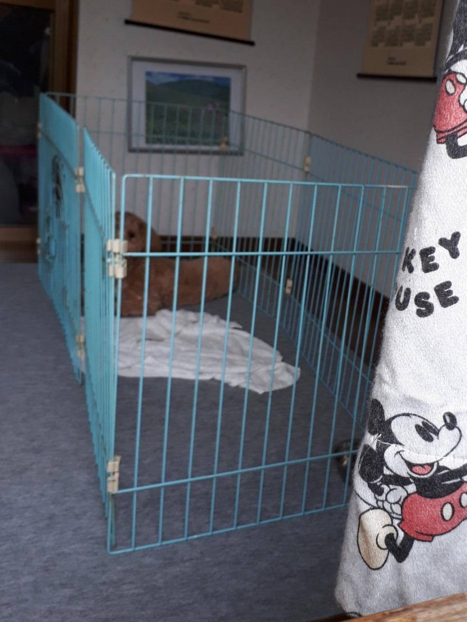 外のサークルに入って行くと、退屈してたので嬉しさのあまりジャンプして飛び付きますが大目にみています。