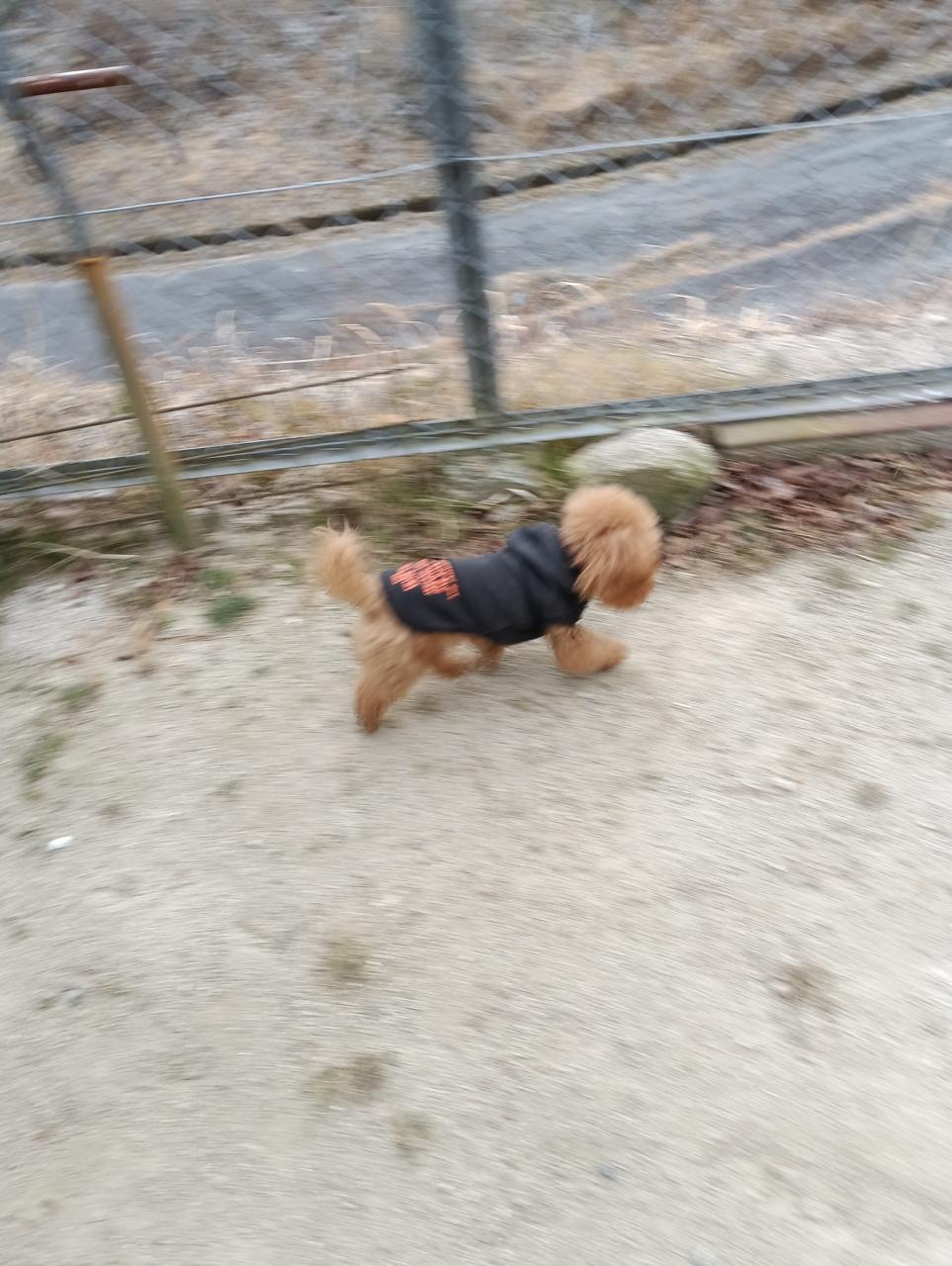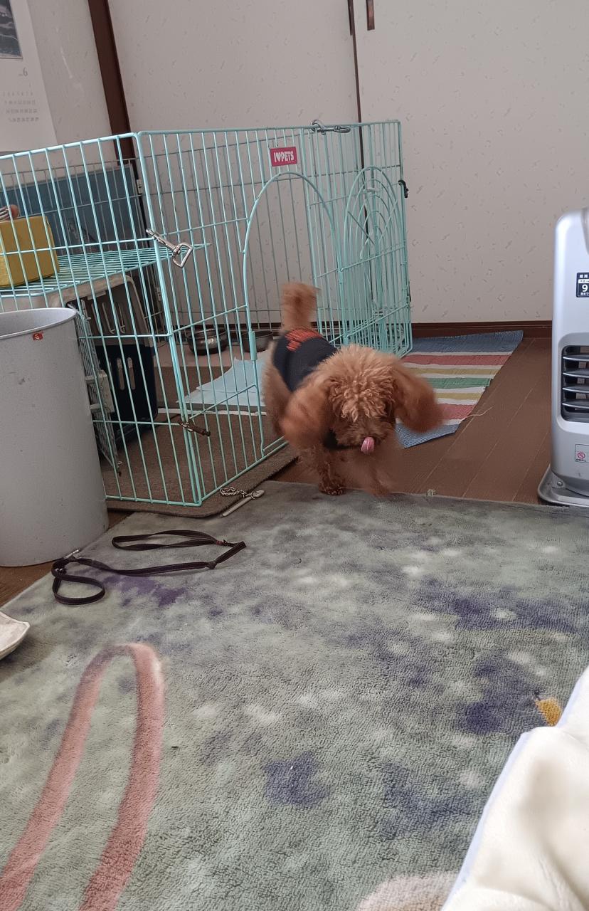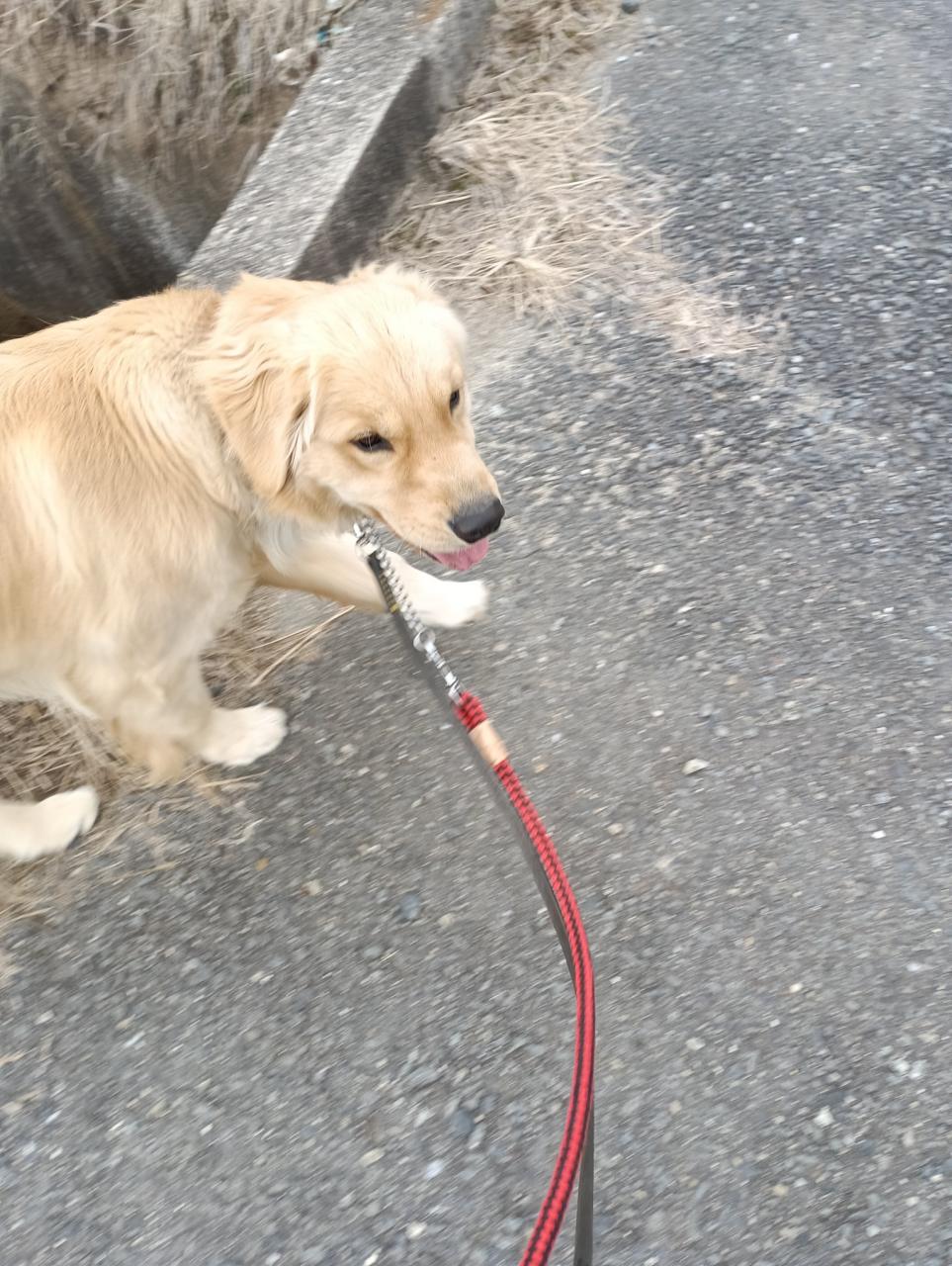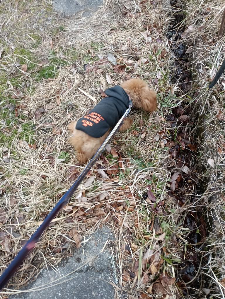 ビビちゃん、朝なら気が散りながらでも、道でも排便出来る。