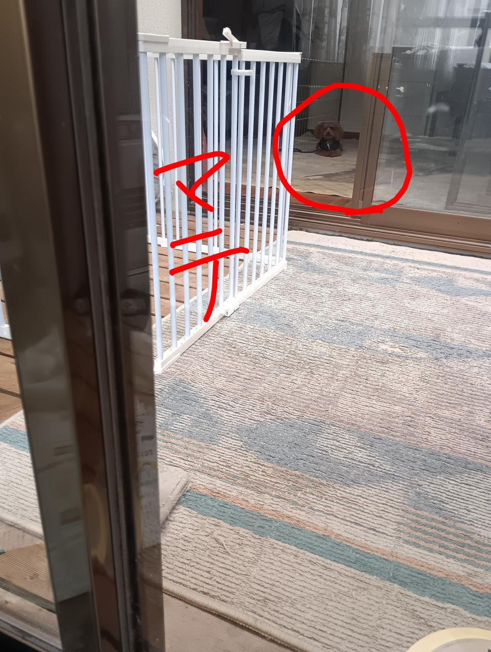 タオルの誘惑に、サークルに飛びつかないように意識付け