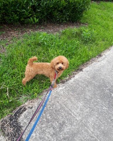 横に付いて歩く楽しみを教えいる。その楽しく動く持久力がこの犬種は問題でしょう。